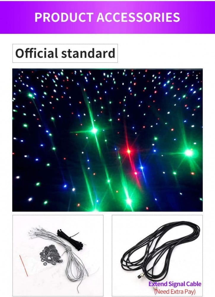 تركيب سهل للجمع أو مختلف المدرجات باستخدام الحلقات المدمجة. مادة مخملية، خرز فائق السطوع، واستهلاك منخفض للطاقة. قابلة للطي، وتسهل التخزين والنقل.