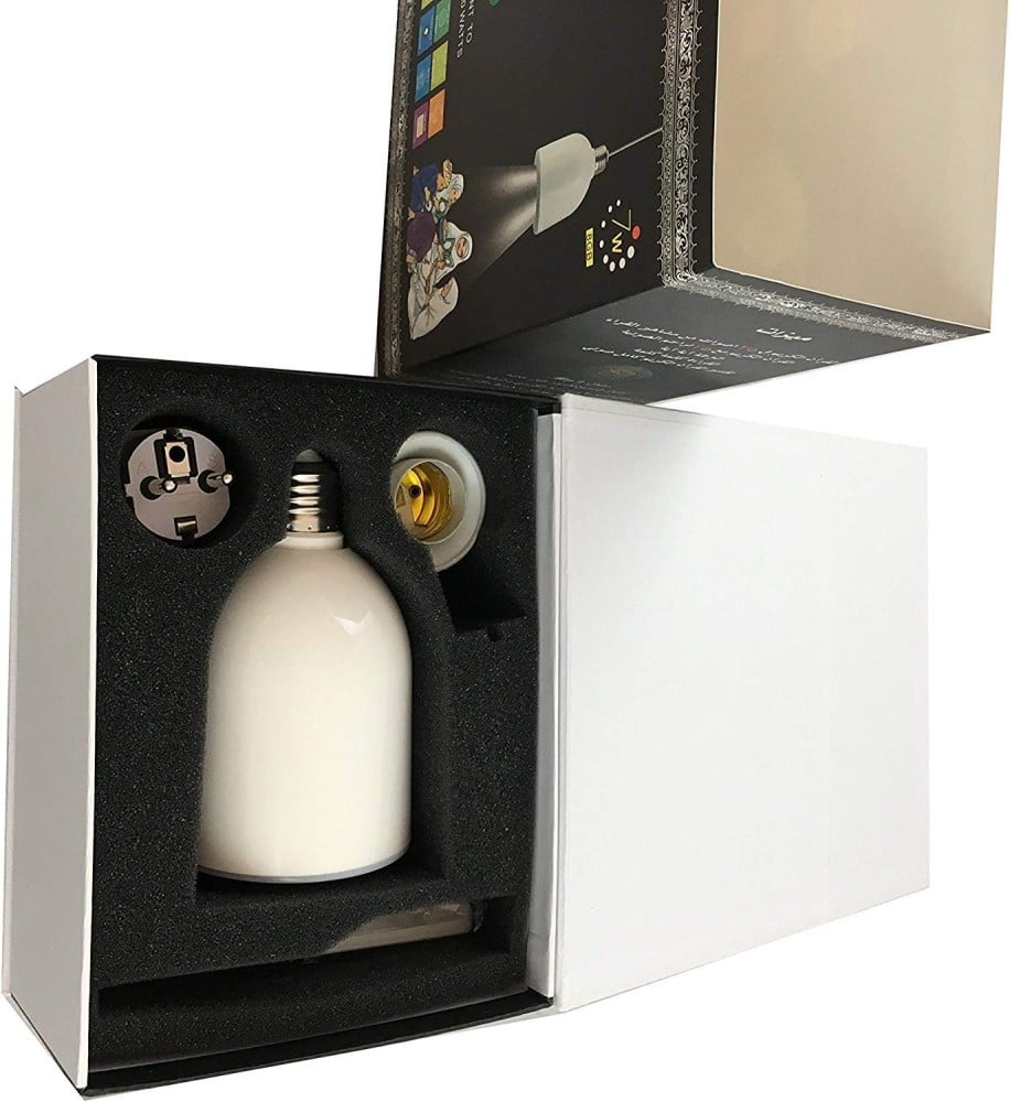 تحتوي العبوة على شاحن، دليل المستخدم، مصباح مكبر صوت LED، محول سفر، حوامل مصباح LED