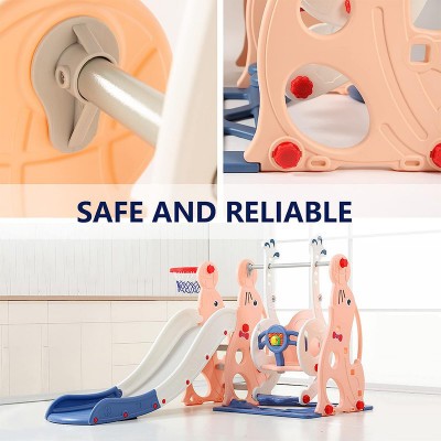 مجموعة أرجوحة متعددة الوظائف 4 في 1 مجموعة أرجوحة منزلقة متعددة الوظائف للأطفال توفر 4 وظائف الانزلاق السلس والتأرجح القوي وسلم التسلق وألعاب كرة السلة ومناسبة للاستخدام في الأماكن المغلقة والفناء الخلفي جميع عناصر النشاط مناسبة للأطفال الصغار سهلة التجميع يمكن تجميع مجموعة ألعاب اللعب 3 في 1 الزاهية والملونة هذه بسرعة ومن السهل تجميع الأجزاء معًا بخطوات قليلة وفقًا للتعليمات يتم تضمين جميع الأجهزة الضرورية ولا حاجة إلى أدوات معقدة يستخدمونها إما بالداخل أو بالخارج تصميم السلامة البشرية كل مكون فردي مجمع كامل وسلس وليس له حواف حادة لتطوير قدرتهم العقليه و الرياضية