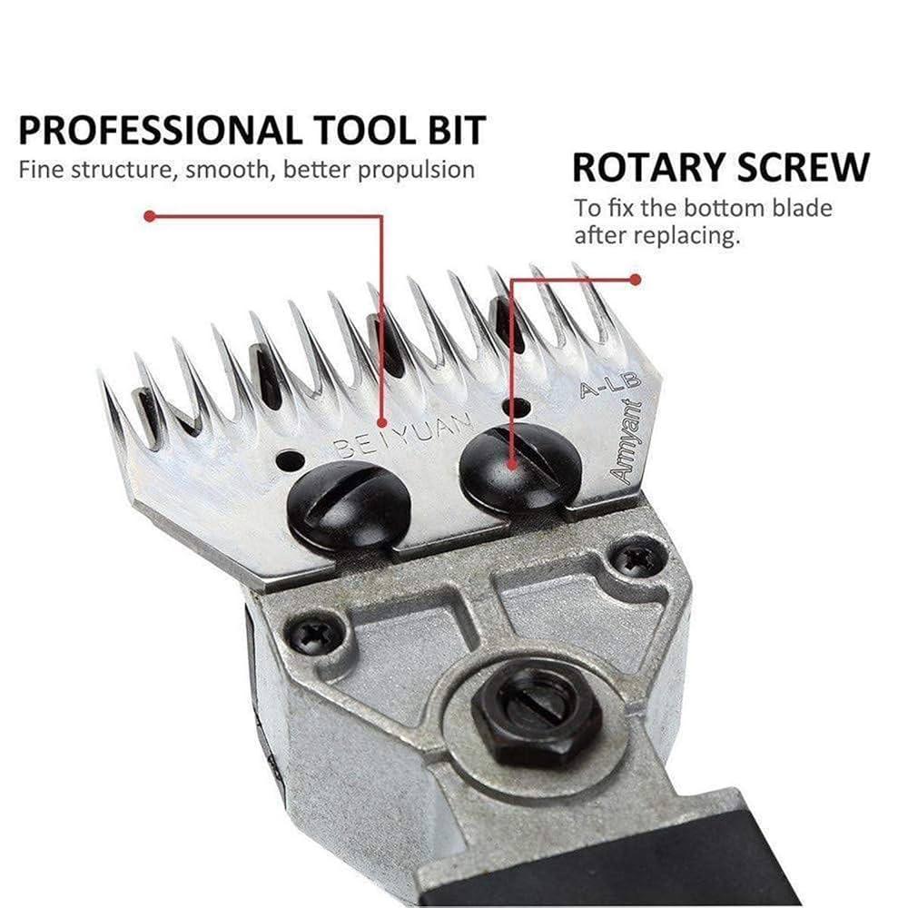 شفرة قابلة للإزالة: الشفرة الحادة مصنوعة من الستيل عالي الجودة، والذي يمكن أن يضمن عمر خدمة طويل. وهذا يعني أنه يمكن قص الصوف بسرعة وكفاءة وحماية الحيوان من الجروح أو الطعنات. الشفرة قابلة للإزالة وسهلة التنظيف والصيانة.