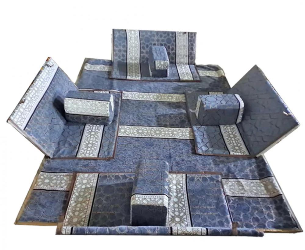 “A stylish traditional seating set consisting of 4 comfortable seats, each measuring 1.20 meters in length, perfect for relaxation during family and social gatherings. The set includes 4 additional support cushions, ensuring extra comfort while sitting. It also comes with a rug measuring 2x3 meters, providing ample space to arrange the seating comfortably. Designed with colorful fabrics and traditional patterns, it reflects authenticity, making it an ideal choice for gatherings and family events, whether indoors or outdoors. It can comfortably accommodate up to eight people, creating a cozy and inviting atmosphere with a touch of cultural heritage