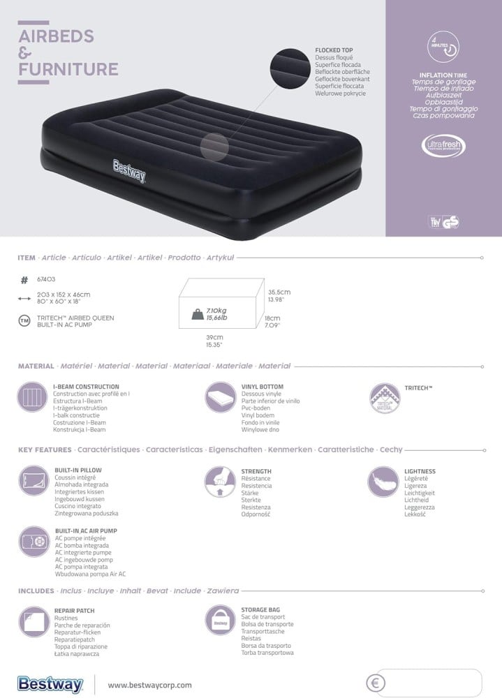 مرتبة قابلة للنفخ بمنفاخ مدمج